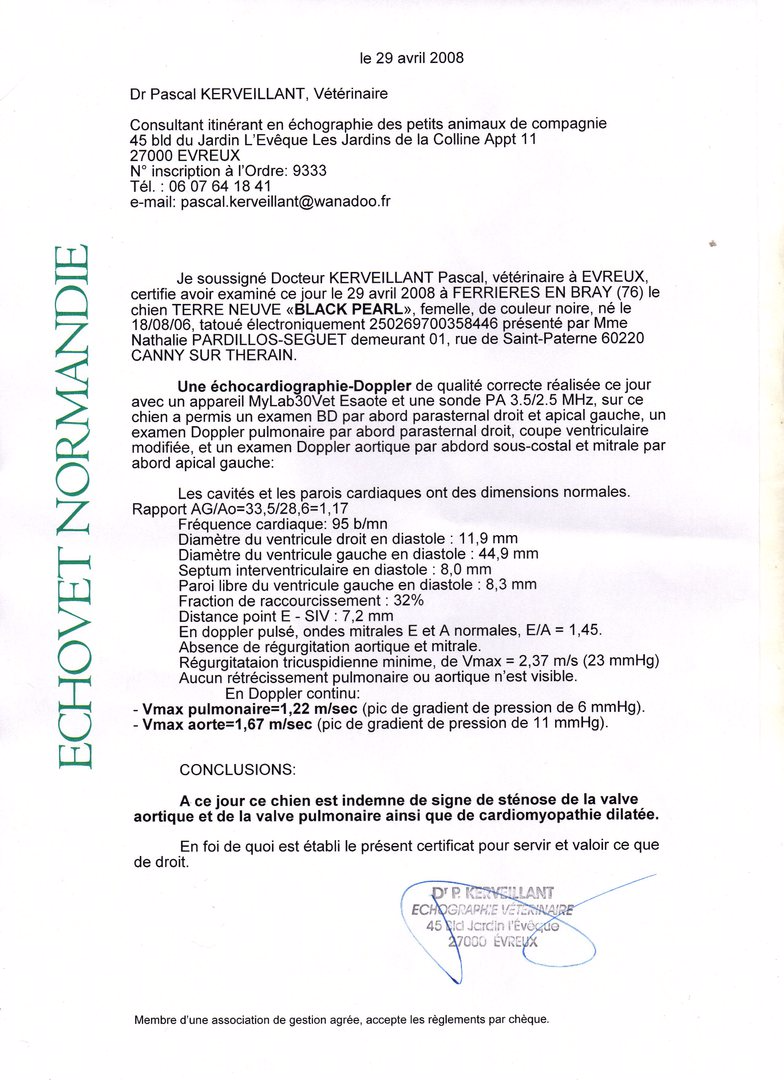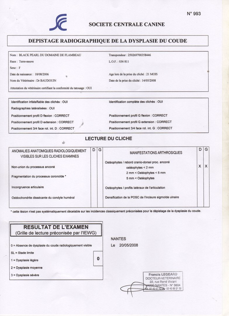 Recessivite Couleur : Blanc et Noir Hanche A Coude 0 Coeur 0 Cyst 0