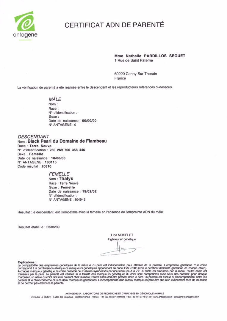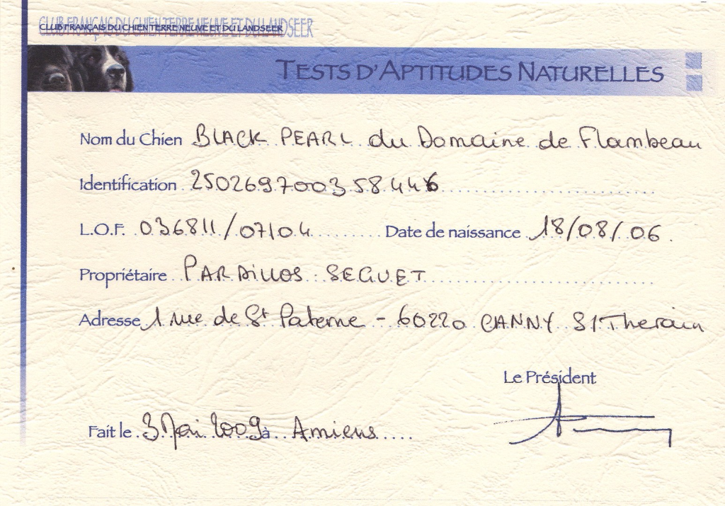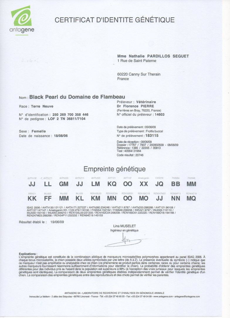 née le : 18/08/2006 LOF 036811/07104