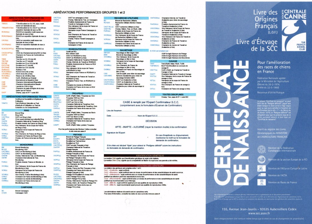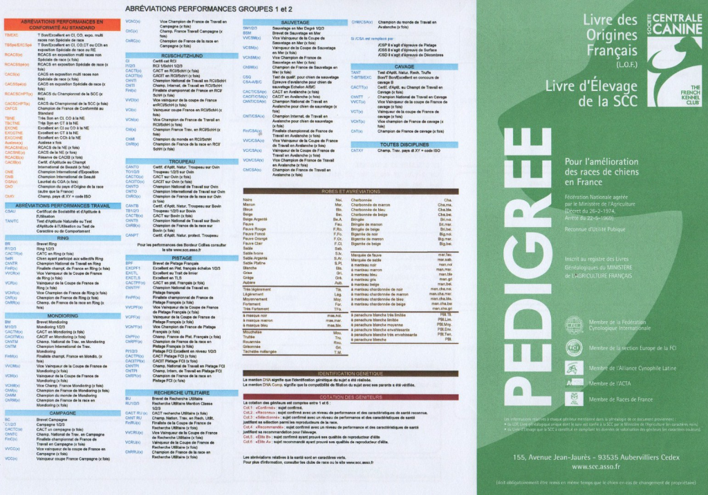 la SCC vous retournera le Pédigrée définitif du chien (en photo ci-dessous)